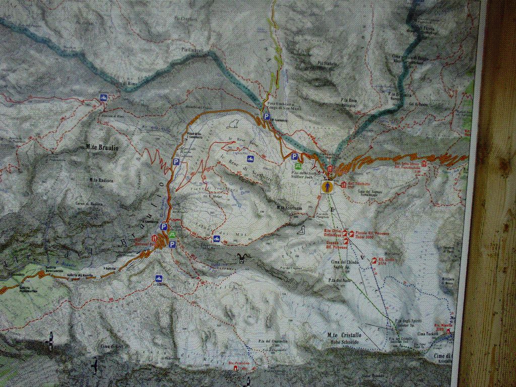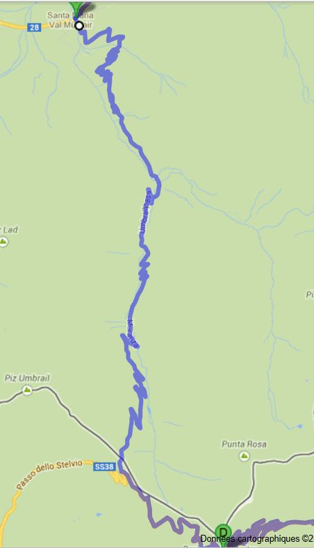 NOUS ON EST VENU DE LA ROUTE QUI EST EN JAUNE FONCÉ AU MILIEU DE LA CARTE AU NORD ET ON EST DESCENDU PAR LA DROITE DE LA CARTE....A GAUCHE VOUS ALLEZ VERS BORMIO