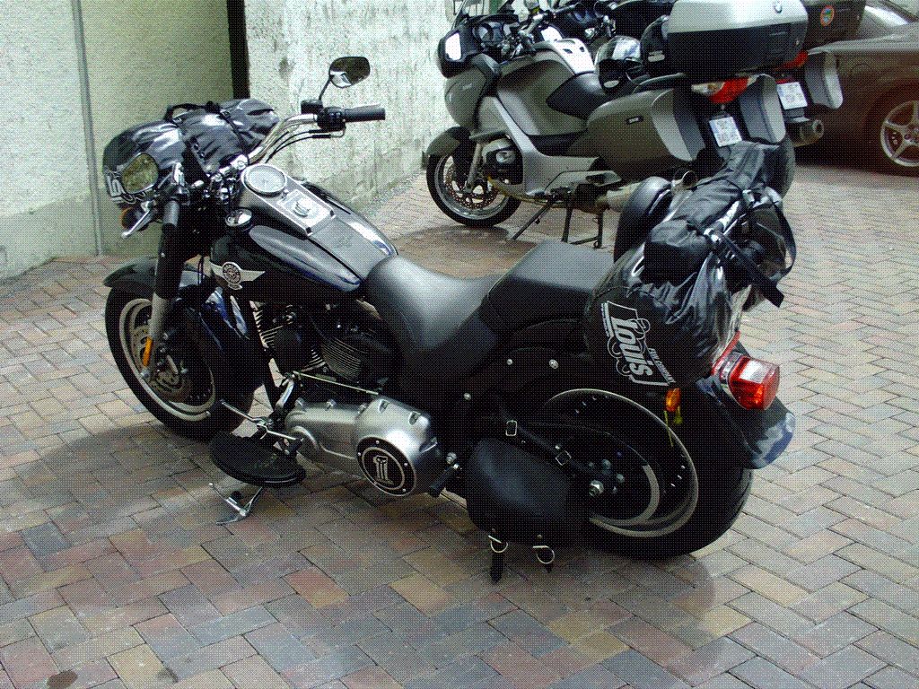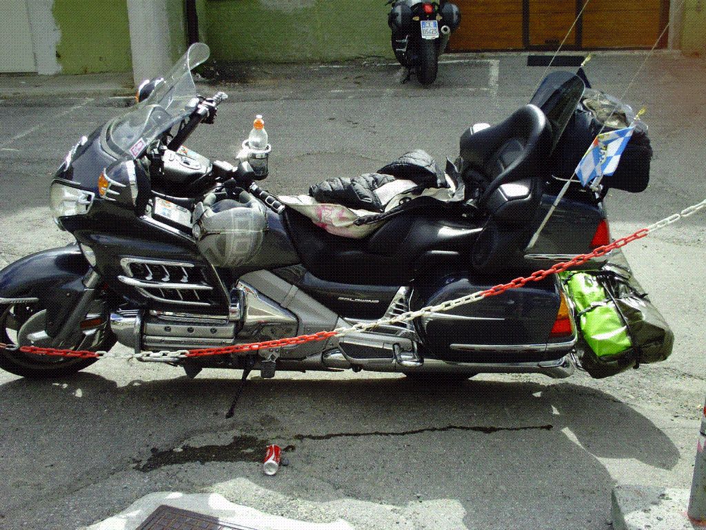DIAPORAMA 4 PHOTOS - EN PLUS CHARGÉ COMME IL DEVAIT ÊTRE......PAR CONTRE PAS PEUR DE SE FAIRE VOLER LE CASQUE ET LA VESTE