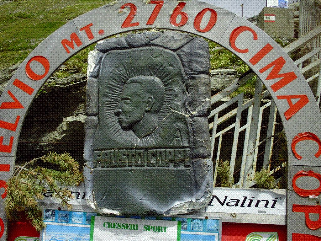 DIAPORAMA 3 PHOTOS - UN PANNEAU BEAUCOUP SE PRENNENT EN PHOTO DEVANT LA STÈLE DE COPPI..............CHAPEAU LES CYCLISTES