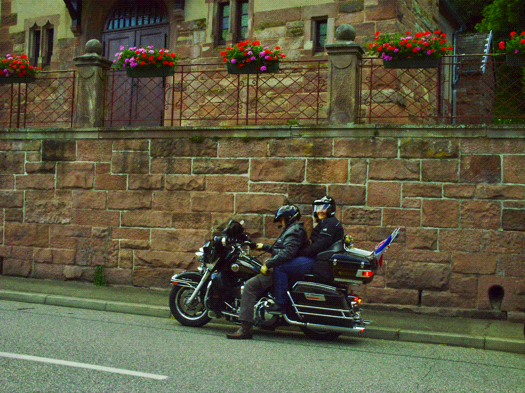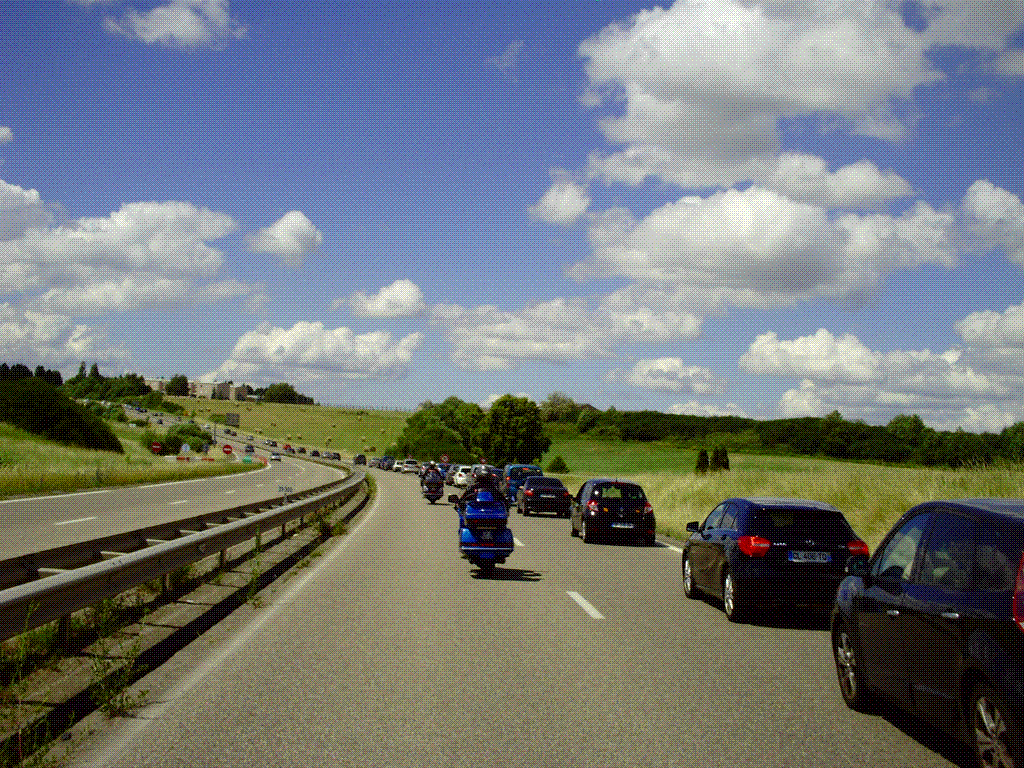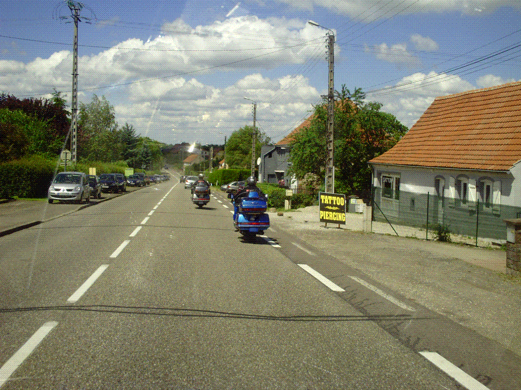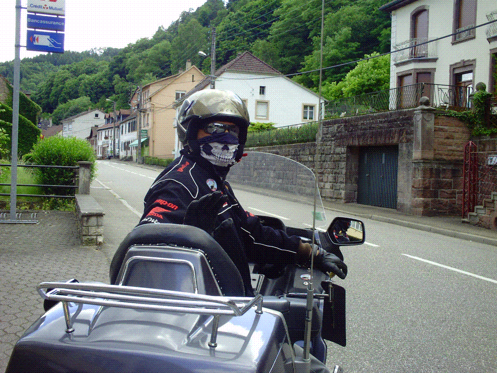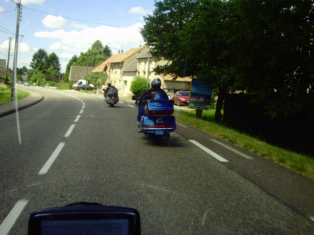 Le temps est nuageux avec du soleil. On va faire un tour. On se retrouve avec jack, Serge en passant par Jean-Marc récupérer mon Mp3 généreusement prêté pour leur descente au Treffen Goldwing France d'Aix les bains