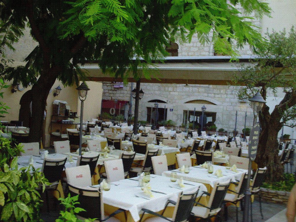 AU CENTRE VILLE APRES LA BAIGNADE, ON REMARQUE LES TOURS TRANSFORMÉES EN TERRASSE - ON NE PEUT Y ACCÉDER TROP DE MONDE DOMMAGE